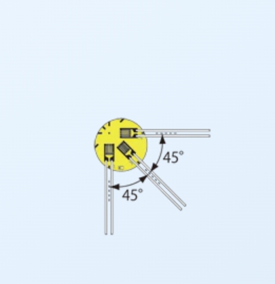 雙軸,3軸應(yīng)變片的顏色區(qū)分為雙線式時(shí)的0°: 紅色,90°: 白色,45°: 綠色
