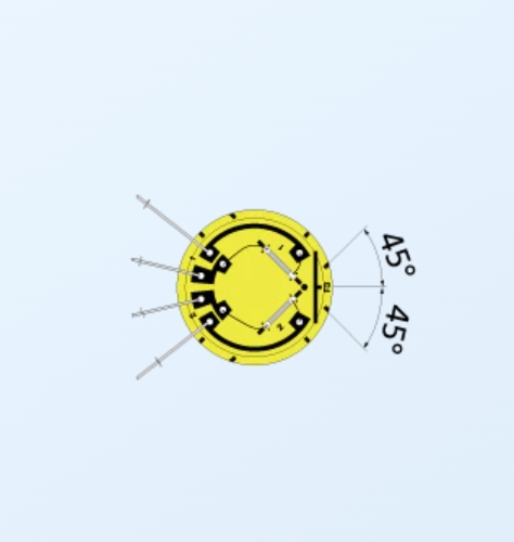 雙軸,3軸應(yīng)變片的顏色區(qū)分為雙線式時(shí)的0°: 紅色,90°: 白色,45°: 綠色